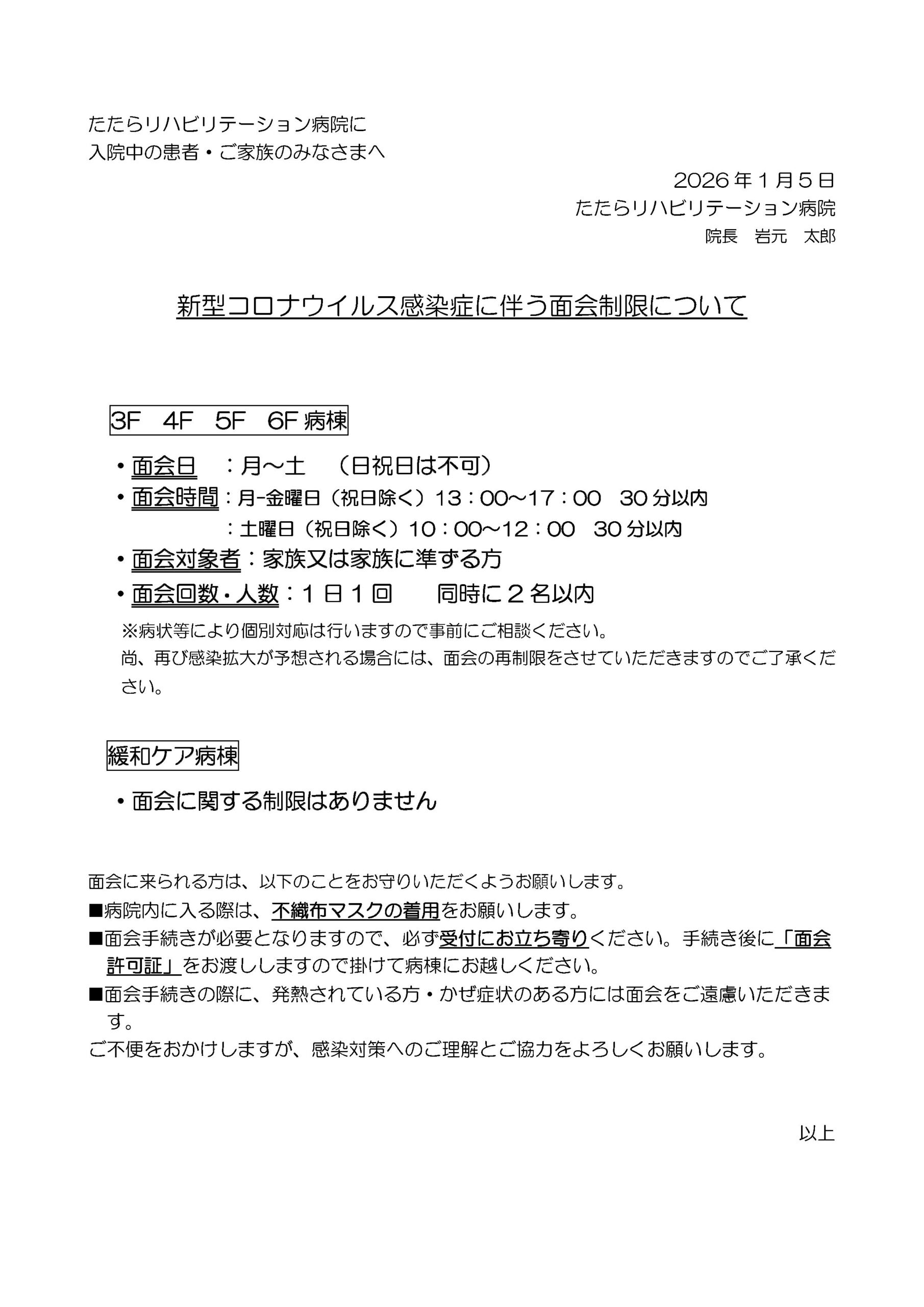 新型コロナウイルス感染症に伴う面会制限について