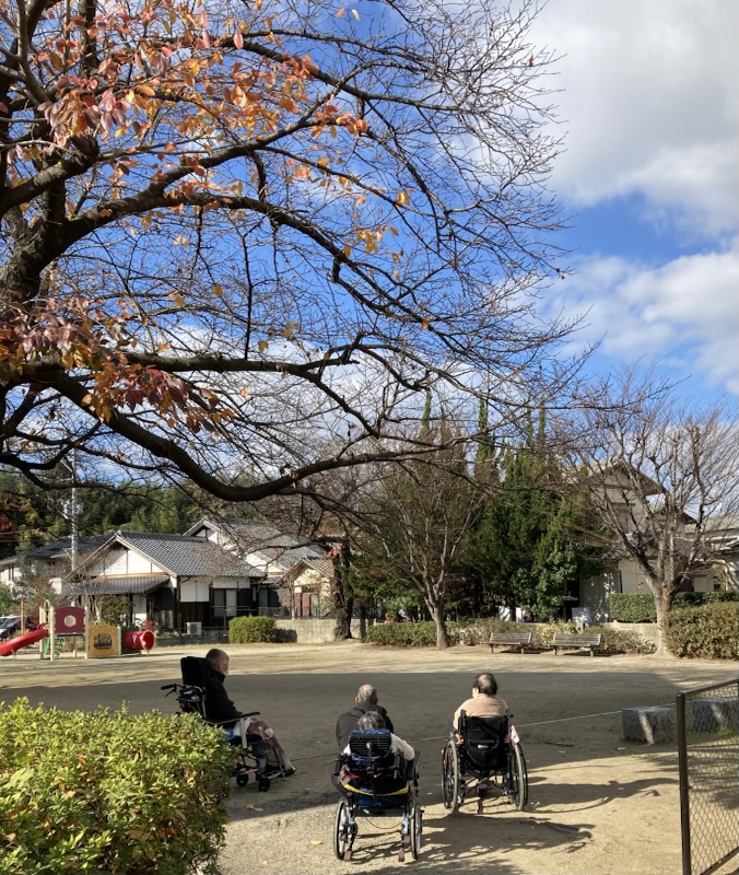 OT科の集団活動の一環で、入院生活を送られている患者さんと季節を感じながら離床、外出の機会をという目的のもと、近くの公園まで行ってきました。