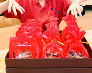 今日はバレンタインデー。 患者さんにバレンタイン気分を味わってもらいたいという思いから 師長と一緒に病室を訪問して患者さんにチョコレートスイーツをお渡ししました。